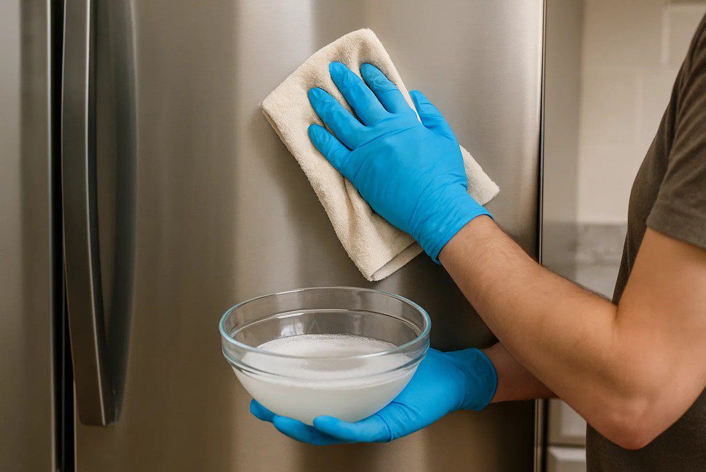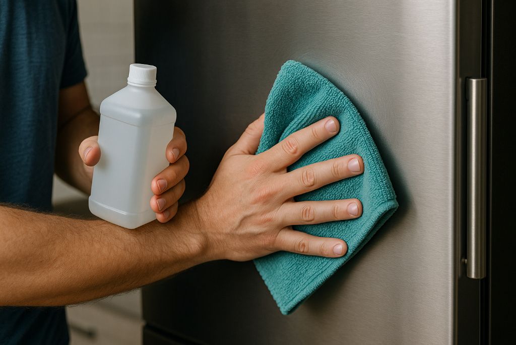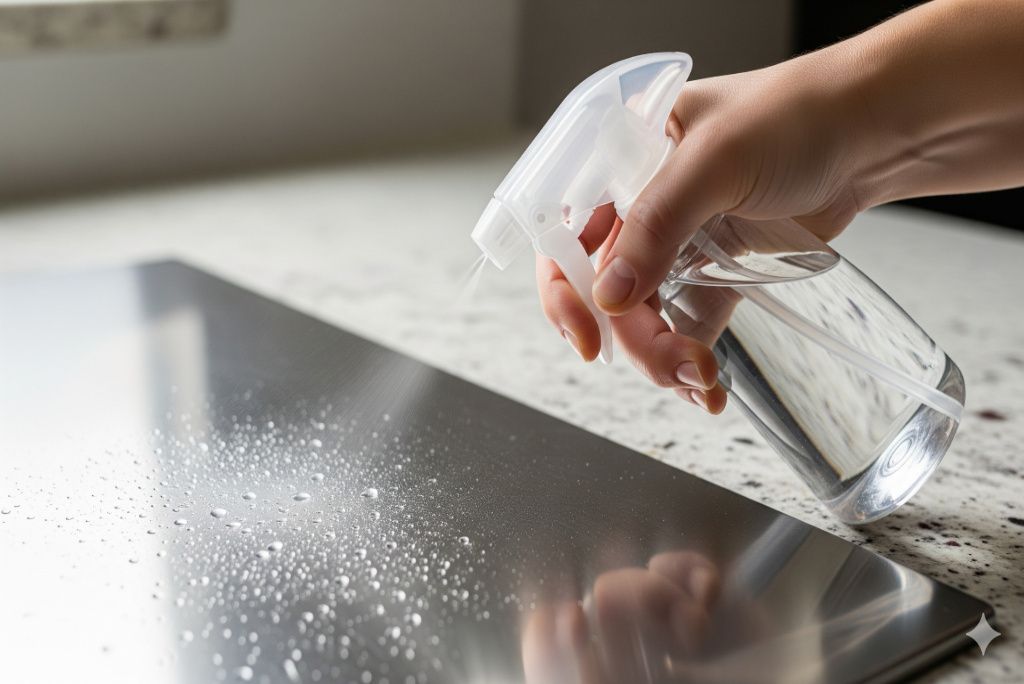 White vinegar is a natural degreaser that cuts through fingerprints and smudges effectively. Fill a spray bottle with equal parts vinegar and water, then mist the stainless steel surface. Wipe with a microfiber cloth, again following the grain. The vinegar smell dissipates quickly, leaving no residue.