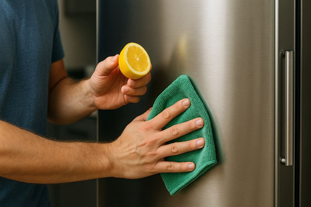 Lemon juice not only removes light smudges but also leaves a fresh scent. Mix equal parts lemon juice and water in a spray bottle, apply to the surface, and wipe dry. Like vinegar, it cuts through grease effectively. The added benefit is its natural deodorizing effect, making it great for kitchen appliances.