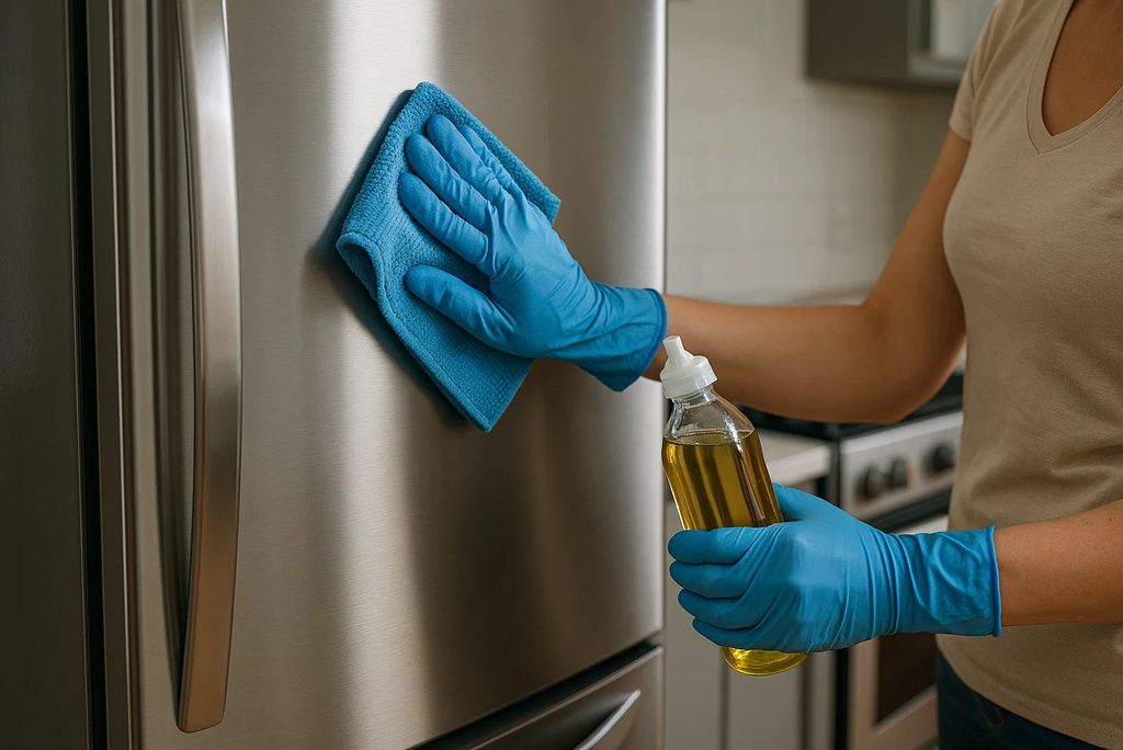 After cleaning, a light coat of olive oil or mineral oil restores shine and helps repel fingerprints. Dab a few drops on a soft cloth and buff the surface in circular motions. This creates a thin protective layer that minimizes streaks and smudges. While olive oil works in a pinch, mineral oil is preferred because it doesn’t turn rancid over time. Many professional cleaners use oil-based polishes for long-lasting results. Consumer Reports highlights mineral oil as one of the best natural stainless steel polishes.